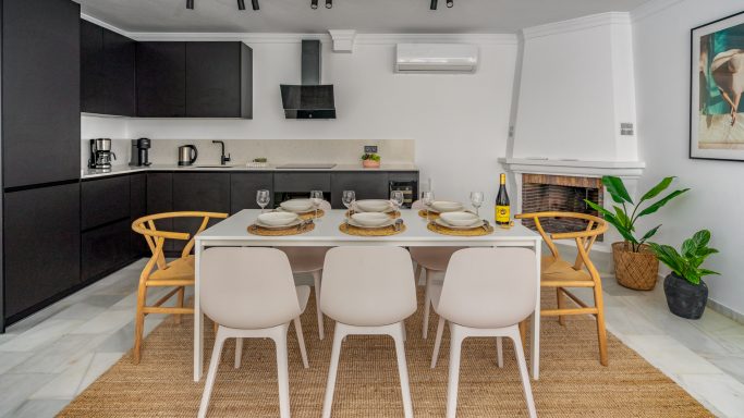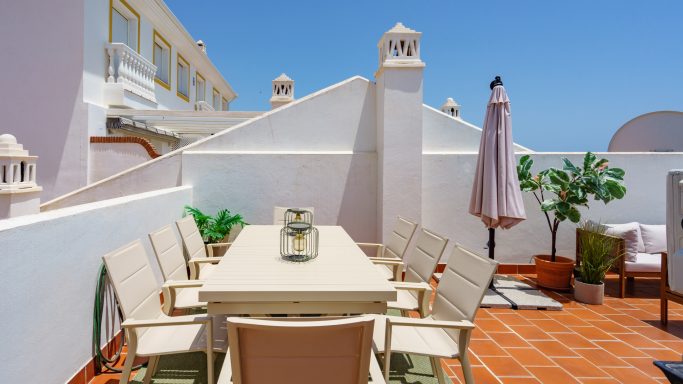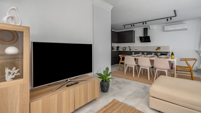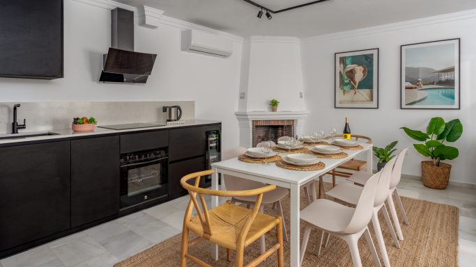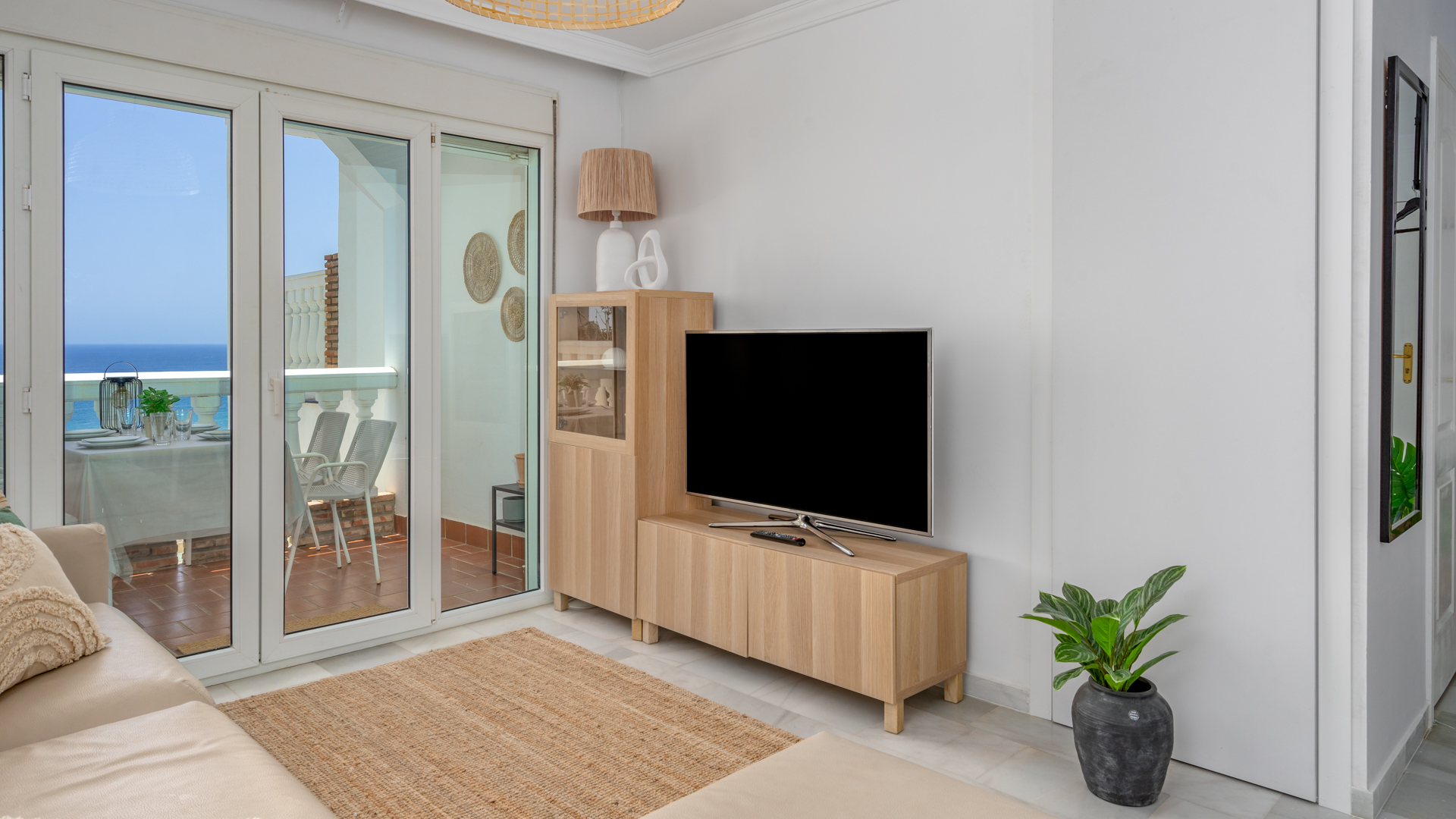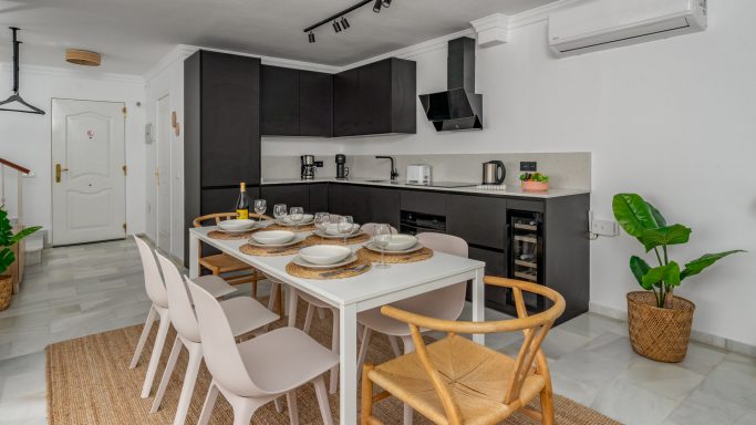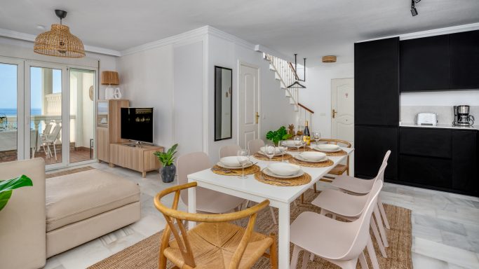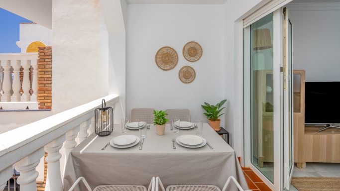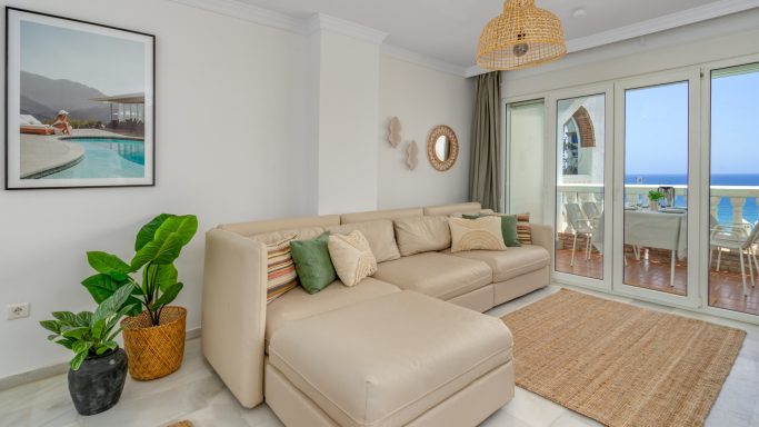 It has a fantastic mediterranean sea view from the terrace and is tastefully decorated in Scandinavian style with a brand new kitchen and a new bathroom. You are close to the beach which takes you all the way into Fuengirola town with lots of restaurants nearby.