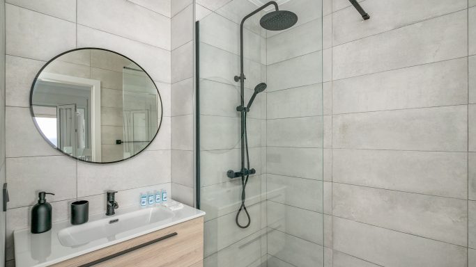 - Two bathrooms with showers and one separate bathroom with toilet and washing machine