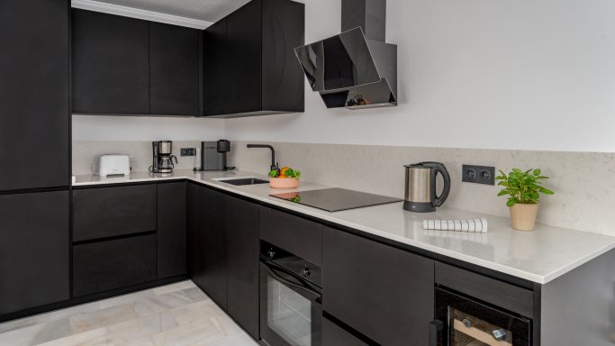 The apartment is tastefully decorated in Scandinavian style with a brand new kitchen.